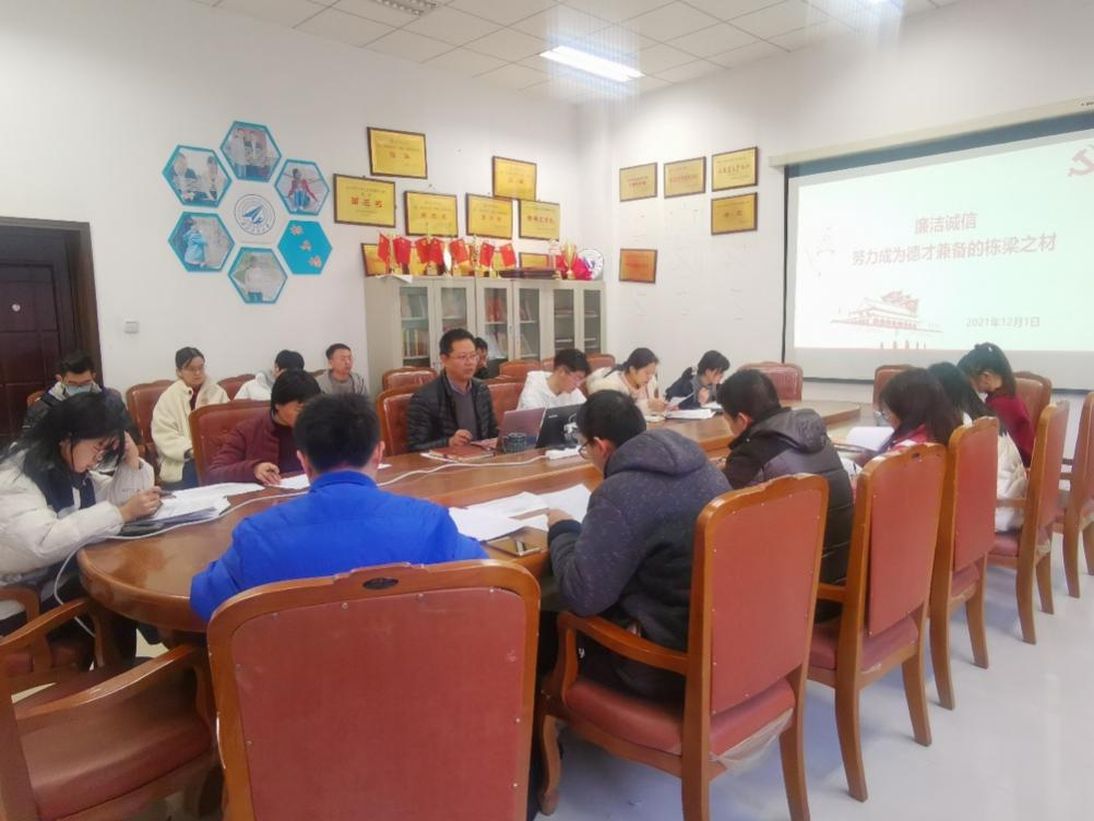 党委副书记万海东讲授了“廉洁诚信——努力成为德才兼备的栋梁之材”主题党课。H片党委组织员李霞、辅导员高云和全体学生党支部书记参加了本次廉洁诚信教育主题党课。