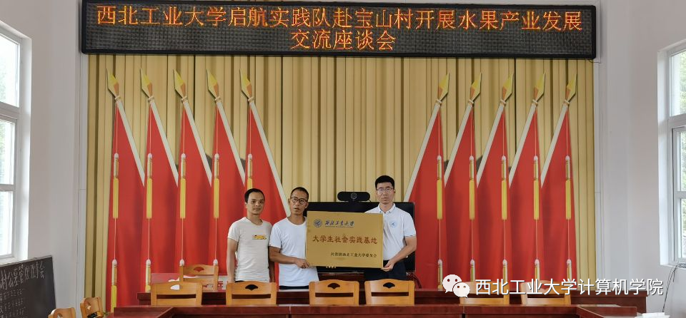 社会实践基地”挂牌仪式。实践基地的建立,不仅为宝山村提供智力支撑,加强宣传和扩大影响搭建了新的平台,同时,也为西工大学生利用好宝山村产品资源优势,深入一线,深入实践提供了新的载体。