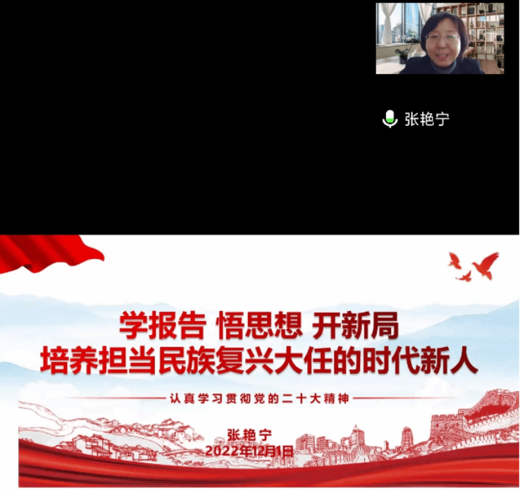 张艳宁就党的二十大精神的丰富内涵和重大意义、赓续“西工大现象”、如何培养一流拔尖创新人才和时代新人等三个方面进行宣讲,并结合研究生教育和H片