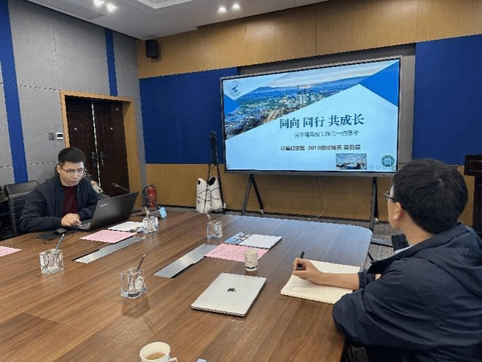 的辅导员梁韵基进行题为《同向 同行 共成长——关于辅导员工作的一点思考》的交流汇报,梁韵基老师也是第六届陕西高校优秀辅导员的获得者,他结合自身担任辅导员的经历介绍了寻访当代愚公黄大发老人,强化学生思政引领的优秀经验以及注重抓学风建设、促高水平科研论文产出等一系列先进做法。