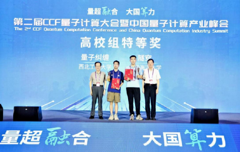 张伟伟副教授指导的本科生参赛队伍“量子纠缠”队在初赛、决赛中圆满完成了线性方程组求解、量子态制备、任意幺正变换的实现等量子算法设计和实现,一路过关斩将,最终取得特等奖的优异成绩。“量子纠缠”队员为西工大H片