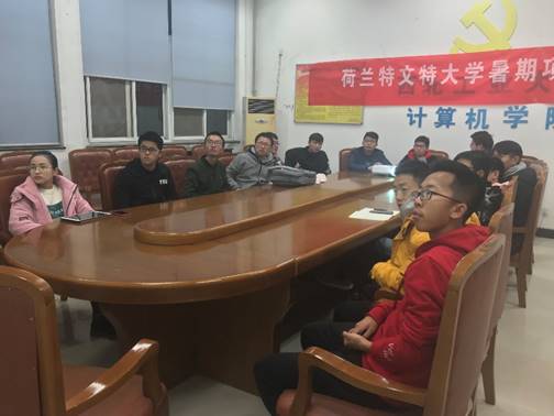 随后,项目参与学生王硕、谢元昊、王翘楚、魏智强等学生先后发言,谈到了在UT暑期项目期间的收获体会。他们讲到,这次UT之行,英语水平真的有了很大的提高,逻辑思维能力也得到了锻炼,学到了不同领域的课程知识,交到了许多国内外朋友,同时也去阿姆斯特丹感受了异域风情和强烈的文化冲击。此外,同学们还谈到了在交流期间的趣闻轶事,比如教俄罗斯同学玩斗地主、3V3趣味篮球对抗赛等。到场的学生对UT暑期项目产生了浓厚的兴趣,就项目的具体报名时间、项目人员的选拔要求等内容进行了踊跃地交流,谈到有趣的事情时笑声不断,现场氛围非常热闹。