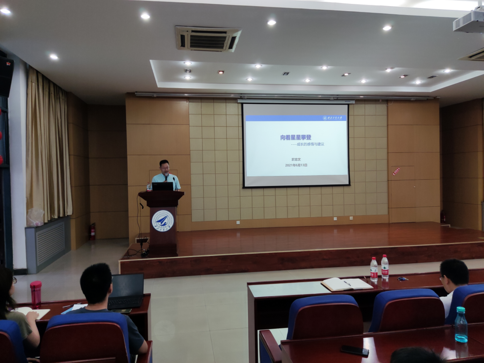 新报告厅顺利举行。H片1996级学长於志文教授以“向着星星攀登”为题为同学们带来一场精彩报告,近200名H片师生参加。H片党委副书记万海东主持报告会。