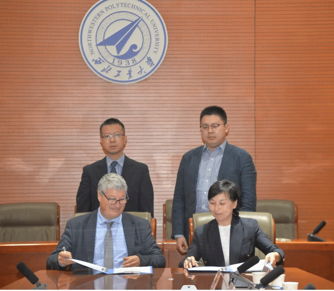 On the afternoon of April 3, EURECOM and the School of Computer Science (SCS) at Northwestern Polytechnical University (NPU) signed a 3+2 and 4+2 cooperation agreement. JOURNEAU Franck, the Director of the Teaching Program of EURECOM and his associate, Shang Xuequn, the Dean of the SCS, Cui Helei, the Dean's Assistant, Wei Qianru, the Dean of the School of Software, and Chen Jun, the Deputy Director of the International Cooperation Office, and relevant personnel attended the signing ceremony. The signing ceremony, which was presided over by Chen Jun, was held in Meeting Room 110 of Qizhen Building.