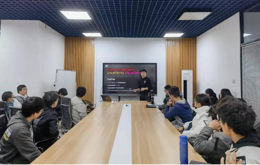 与会同学马梓觐感言:“刘乐老师全程用流畅的英语为我们带来了关于可视化技术的学术报告,使我大受震撼,以及简明易懂的PPT制作风格给了我许多在报告演讲方面的启发与思考。另外,刘老师在报告中关于可视化技术的讲解让我对可视化这一计算机科学前沿研究方向有了更加感性的认识,作为数据的重要组成部分,可视化不确定性有助于数据分析者更加全面地理解并分析数据,以便帮助使用者做出最优的决策,但仍存在众多重要问题丞待解决,如何进行更加行之有效的不确定性可视化,也将是未来迅速发展的一个计算机科学领域研究方向。”