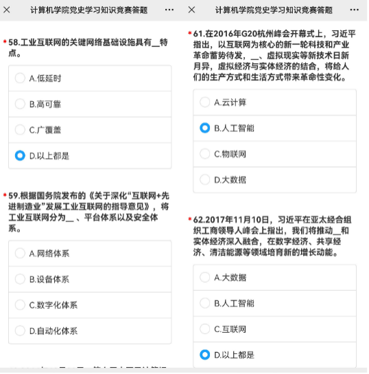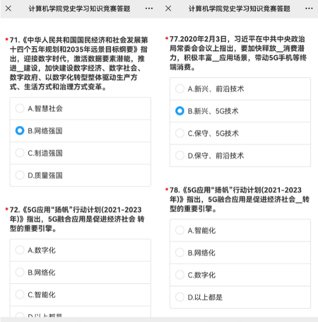 党委认真梳理党史上中央领导关于互联网、大数据、云计算、人工智能、区块链、信息化、数字化、智能化、数字经济、数字强国等与计算机领域密切相关的重要论述、重大部署和重要讲话精神,加上习近平总书记在党史学习教育动员大会上的重要讲话精神和师德师风建设、立德树人、教育评价改革等相关要求,精心挑选汇编成一百道题的党史学习教育知识竞赛题,组织H片广大师生员工,于11月10日至17日开展了特色别样的“不忘使命、勇挑重担”党史学习答题活动,H片200余名师生党员参与了此次活动,重温党史上的“计算大事”,坚定共产主义信念,赓续共产党人的精神血脉。