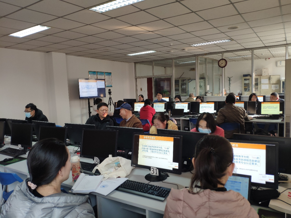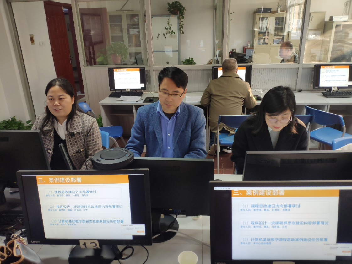 课程思政建设实施方案>任务分解表》,在计算机基础教学工作中全面贯彻教育部《高等学校课程思政建设指导纲要》精神,推进计算机基础教学课程思政建设工作,11月28日上午,计算机基础教学与实验中心在毅字楼433机房召开计算机基础课程思政建设研讨会。H片