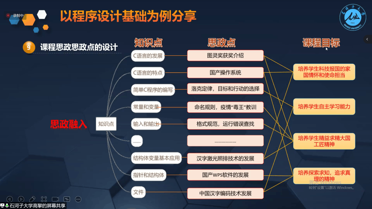 最后,高攀教授以《程序设计基础》课程为例,详细的分享了课程思政教学设计方案,与会教师深受启发,表示自己从中获益良多,也希望未来能跟高攀教授进行更加深入的交流和研讨。本次讲座深入浅出,营造了良好的思政研讨氛围,为H片课程思政的落实与推进起到了引领示范作用。