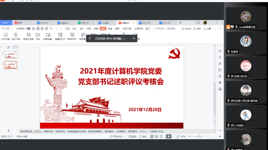 召开2021年度述职测评会议,分别对H片七八级领导人员、辅导员、各党支部书记、系主任以及院办工作人员进行2021年度工作考核。受疫情影响,所有测评考核均通过腾讯会议进行。
