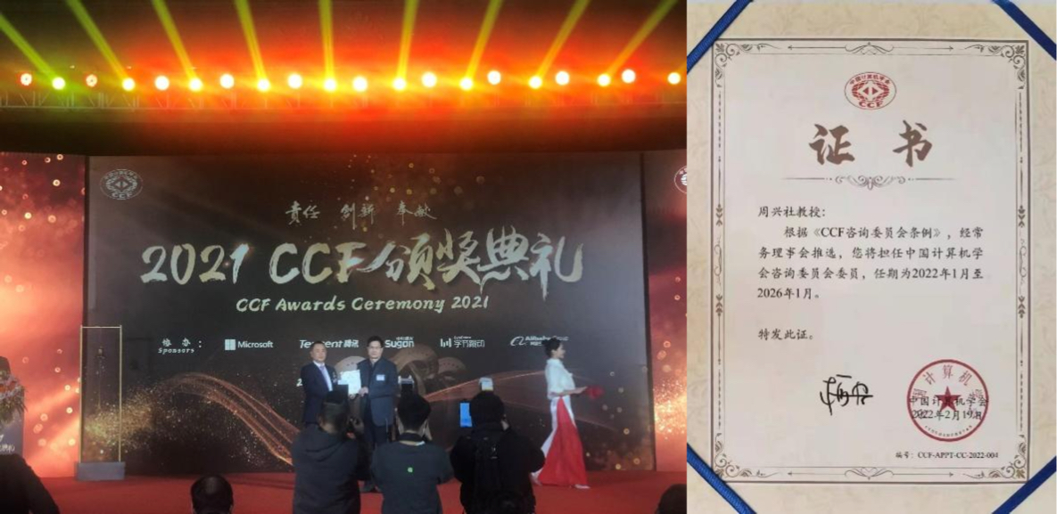 周兴社教授是CCF会士,2019年度CCF杰出教育奖获得者,于2000-2019年期间担任CCF常务理事,是CCF民主选举制度下任期时间最长的常务理事。目前还担任陕西省计算机学会理事长。