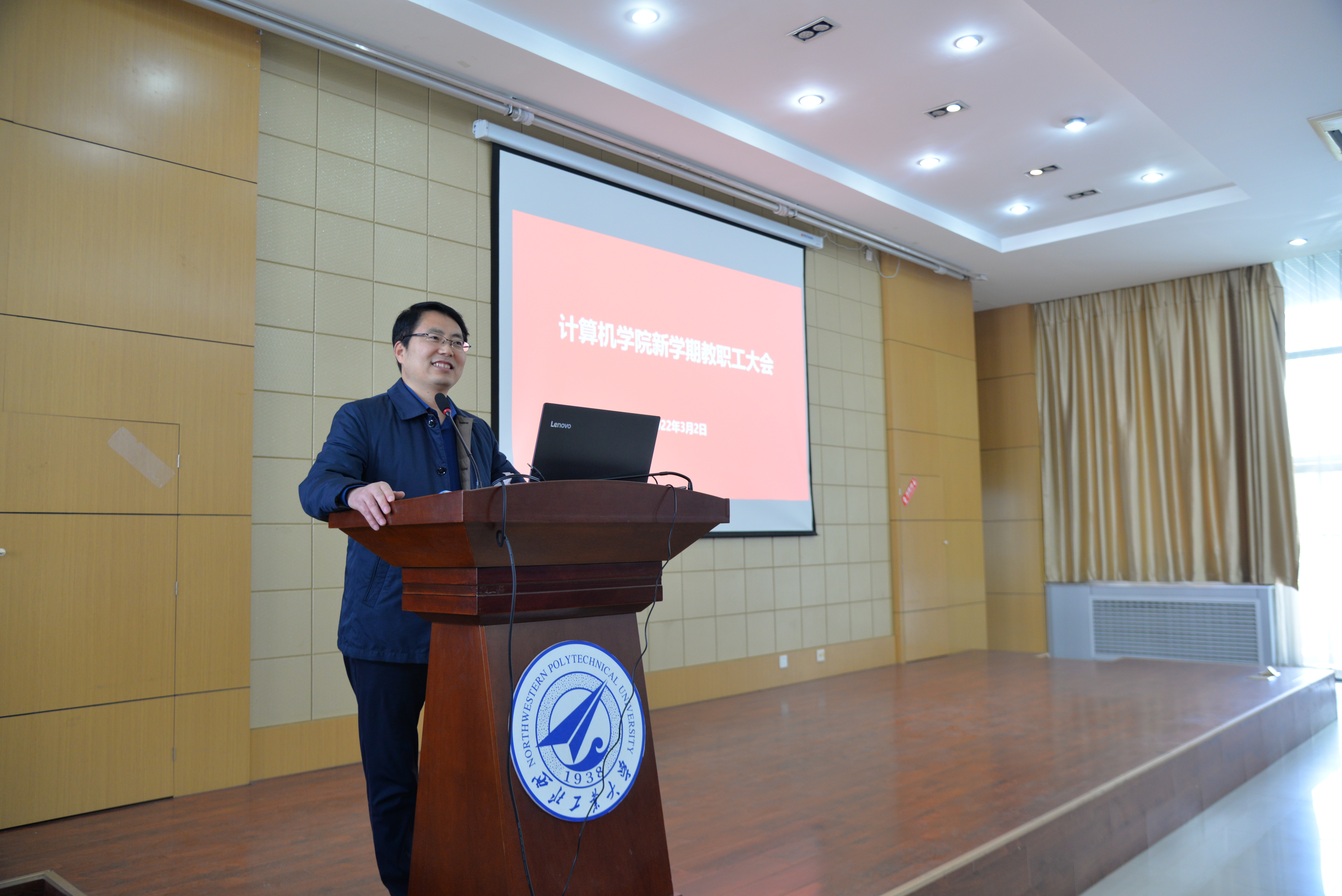 在H片报告厅召开新学期教职工大会,H片全体教职工参会。会议由H片党委书记李春科主持。