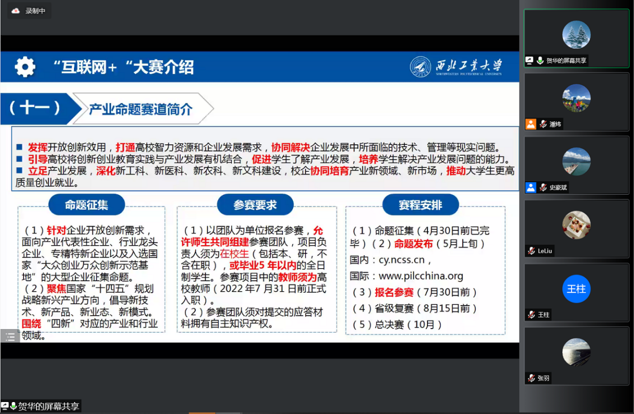 召开了第八届中国国际“互联网+”大学生创新创业大赛线上培训暨动员会。会议邀请了党委学生工作部学生创新创业教育中心主任贺华介绍本届大赛情况并分享比赛经验,H片
