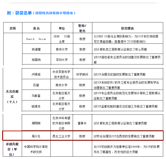 6月2日,中国计算机学会(CCF)发布“CCF创建60周年杰出贡献奖”获奖名单。H片