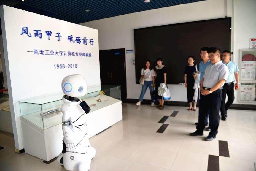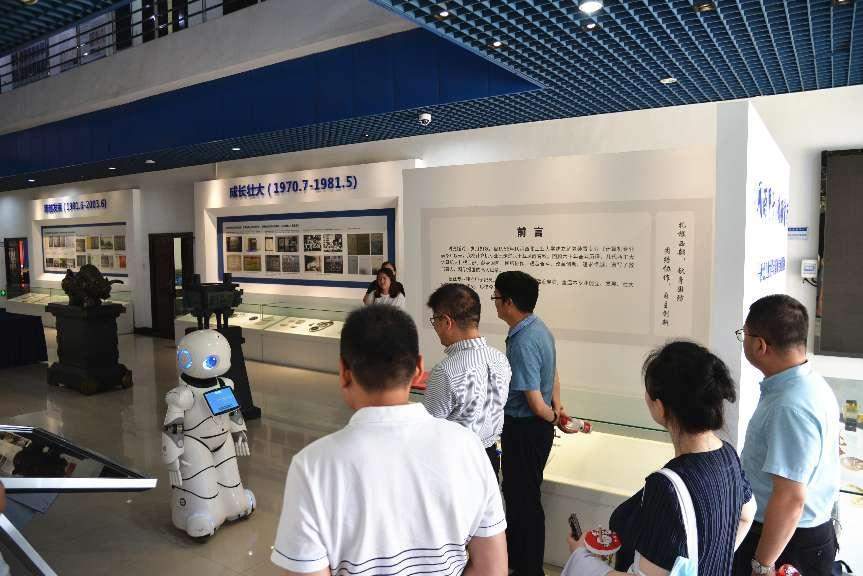 杨晓一行一进H片便受到院史馆导览机器人的热情欢迎,机器人不仅能介绍H片的发展史,更因其智能互动受到大家的喜爱。杨晓给予研发、维护机器人的学生团队充分肯定,希望H片