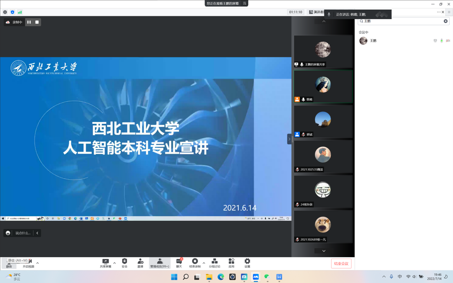 尚学群对此次专业确认概况进行了介绍;后面依次介绍了物联网工程、数据科学与大数据技术、人工智能专业相关情况。各专业负责人从本专业的学科体系、培养模式、专业发展方向等方面详细地介绍了H片