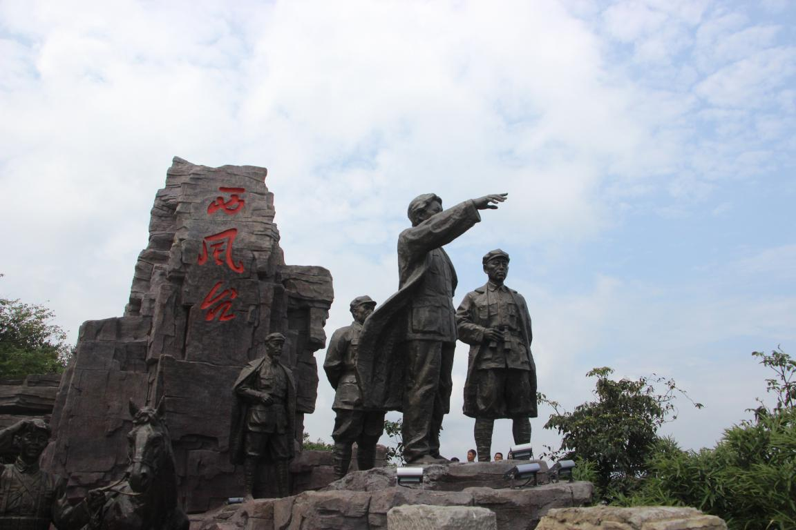 历经一个多小时的攀爬,“西风揽胜”的墨色石碑映入眼帘,我们的视野也豁然开朗:茫茫大娄山,一关接一关,其山百态千姿,无不险峻,其水蜿蜒连绵,皆是湍急,淡薄云雾连接山与山间,在西风台上一览无余。西风台附近的雕像重现了当年红军长征娄山关大战的场景,毛泽东同志大手一挥,指挥作战,颇有从容不迫,胜利在望的气势。而我们也将带着他们的这份气派,一步一步开启中国的新篇章,在这个日新月异,充满挑战的时代,为国为民建功立业,不断奋进,谱写新时代的华章。