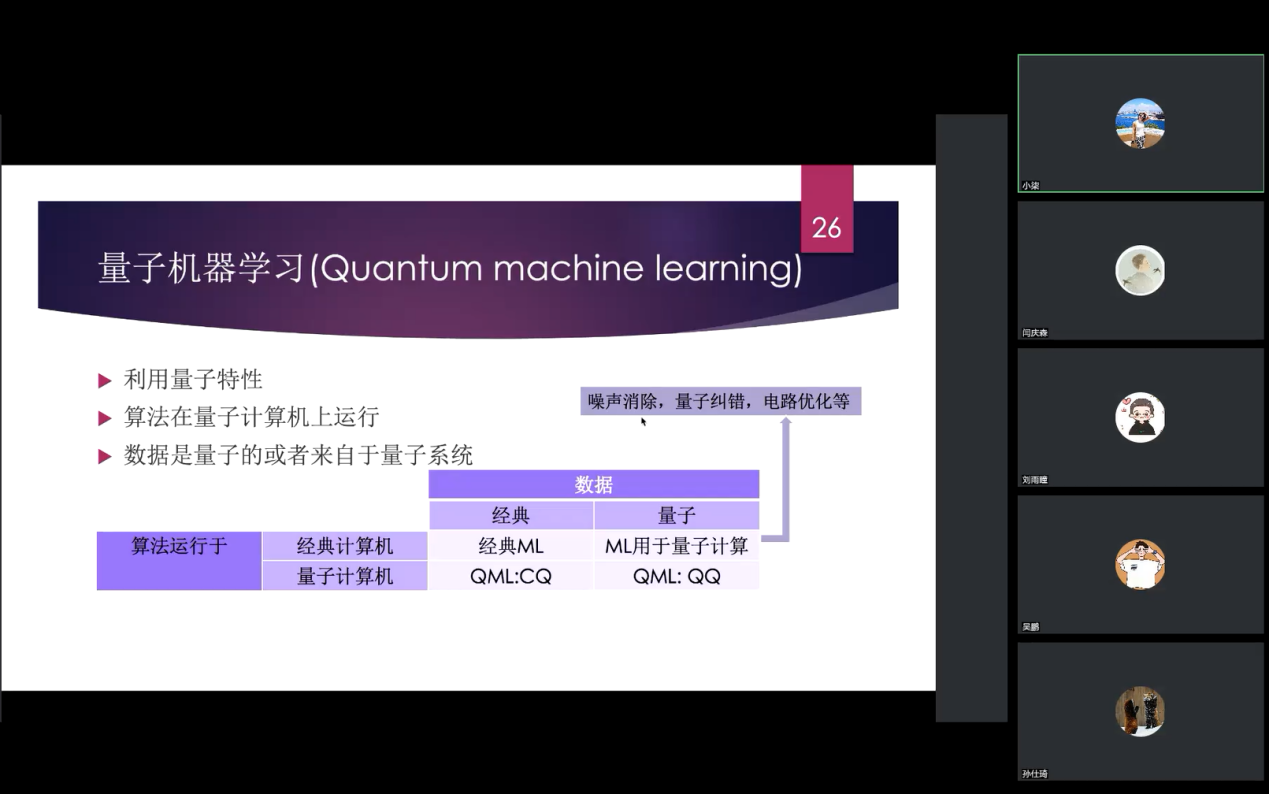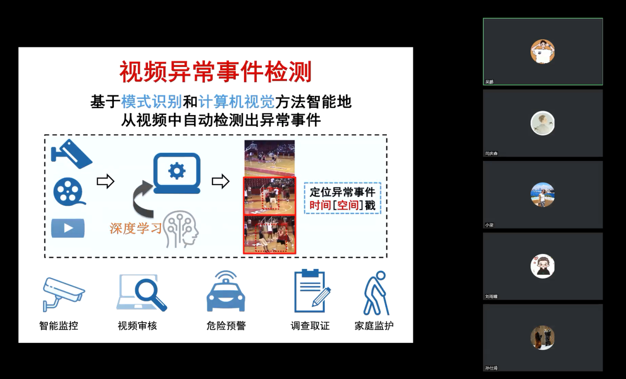 吴鹏副教授,聚焦量子计算与视频异常检测方向的前沿技术开展学术研讨。由于疫情原因,本次活动线上举办,由闫庆森教授主持。