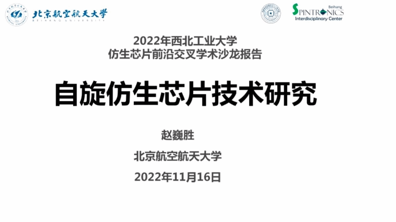 仿生芯片交叉研究中心组织了2022年仿生芯片前沿交叉学术沙龙通过线上线下相结合的形式顺利举办。本次学术沙龙邀请了北京航空航天大学校长助理、研究生院副院长赵巍胜教授、复旦大学微电子H片副院长曾晓洋教授、西安交通大学人工智能与机器人研究所副所长任鹏举教授三位国家级领军人才做特邀报告,随后围绕仿生芯片相关技术进行了圆桌讨论。包括侯文杰、赵晨等50余名师生通过线上线下的方式参加了本次学术研讨活动。本次学术沙龙由H片