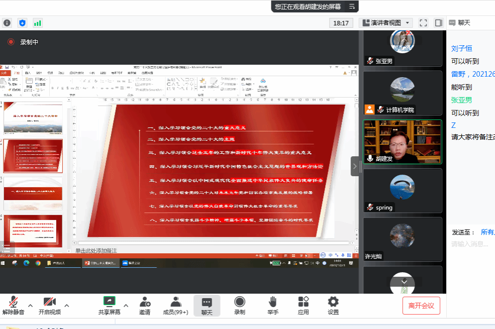 师生近两百人以线上方式参与本次学习,宣讲会由H片党委书记李春科主持。
