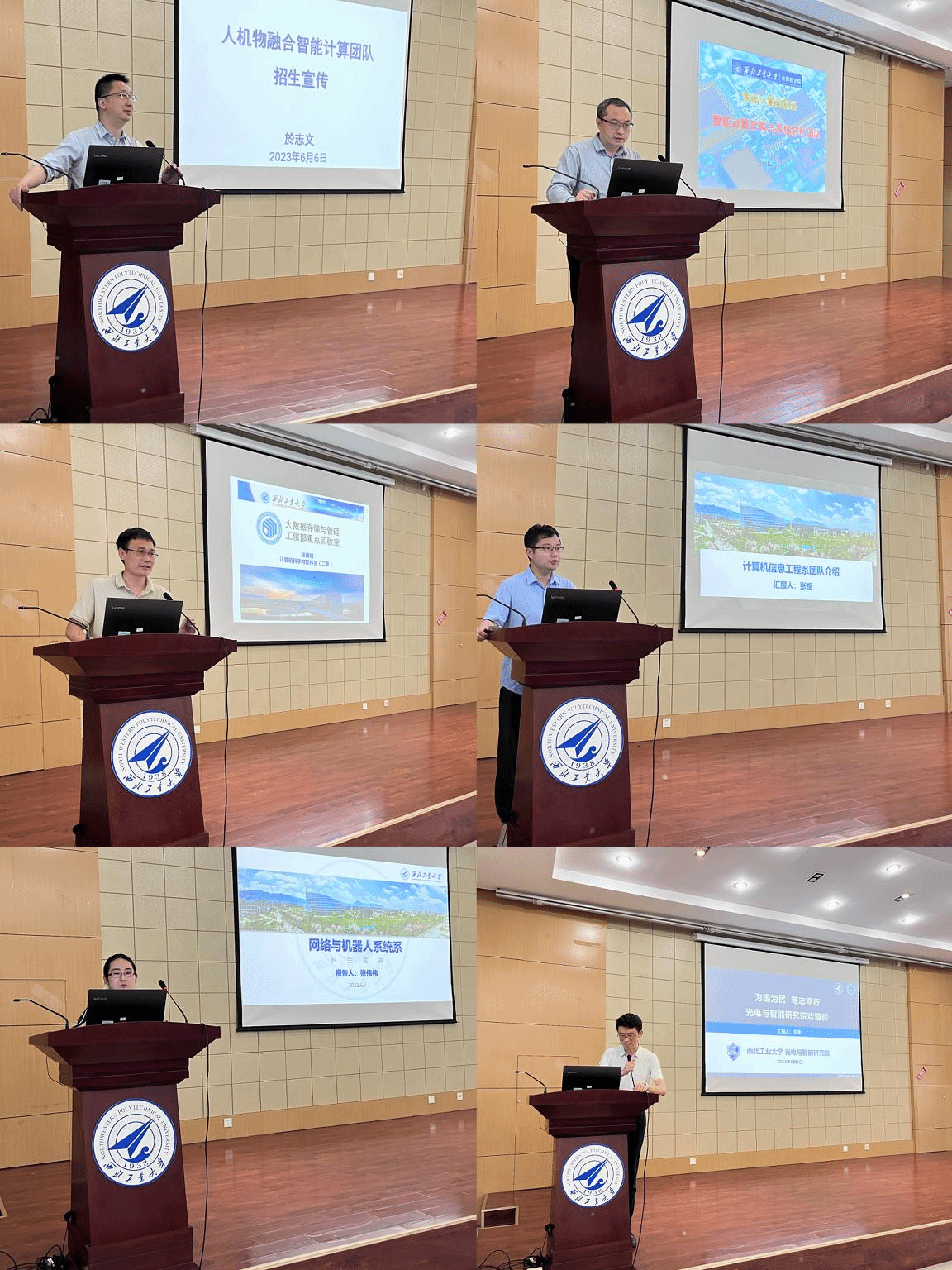 接下来,张羽和安建峰分别介绍了人机物融合智能计算团队和智能计算架构及系统芯片团队的基本情况、导师团队、研究方向、研究成果和国际化人才培养,张育培详细介绍了大数据管理与分析研究团队,以及领域化大数据应用和海量数据存储等方面的研究方向和研究成果等内容,张枢向同学们介绍了智能感知与媒体计算、复杂软件系统、系统测控仿真与信息存储技术三个研究团队的导师、科研和研究生培养成果,张伟伟介绍了四系的基本情况以及计算机网络的相关内容,王琦介绍了光电智能研究院的研究方向、科研环境及研究生培养等内容。