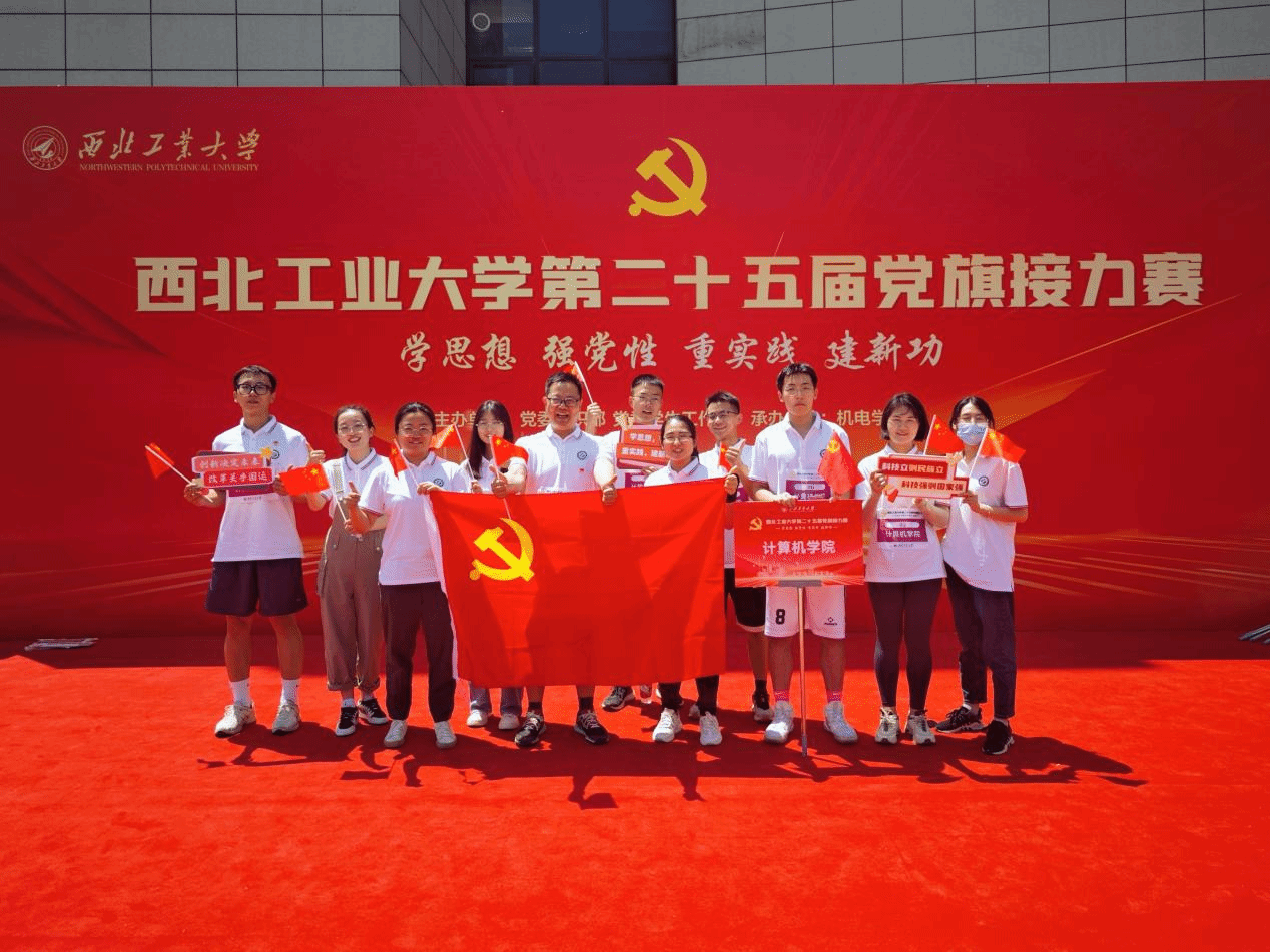 党旗接力赛是西工大品牌党建活动。本届比赛以“学思想、强党性、重实践、建新功”为主题,共有37支代表队参赛,活动分为 “科教兴国”、“文化强国”、“人才强国”、“团结奋斗”、“创新驱动”、“寄语青年”六个赛段。比赛中穿插新思想知识问答、团队协作、“飞花令”、“总师连连看”等环节,将理论学习内容融入趣味活动中,让师生党员们在有趣而激烈的比赛中锤炼党性。