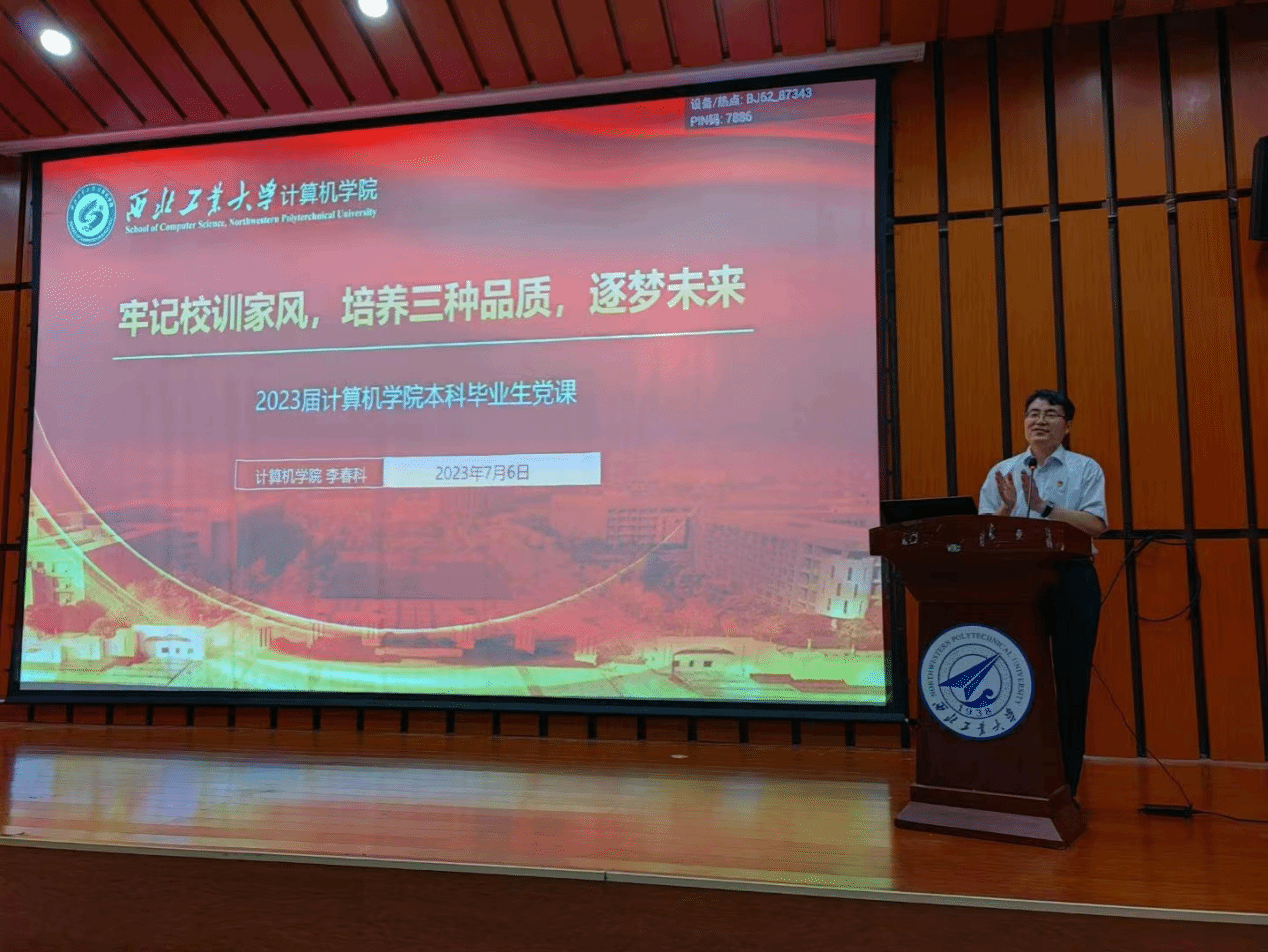李春科首先向2023届全体毕业生顺利完成学业、即将逐梦新征程表示热烈祝贺,并对大家四年来对H片事业发展的默默奉献和理解支持表示衷心感谢,嘱托毕业生们要牢记“公诚勇毅”校训和“三实一新”校风,继续秉承和发扬老一辈计算机人敢为人先、自主创新的优良家风,怀揣远大抱负和历史使命,01创新,计算报国,智创未来。