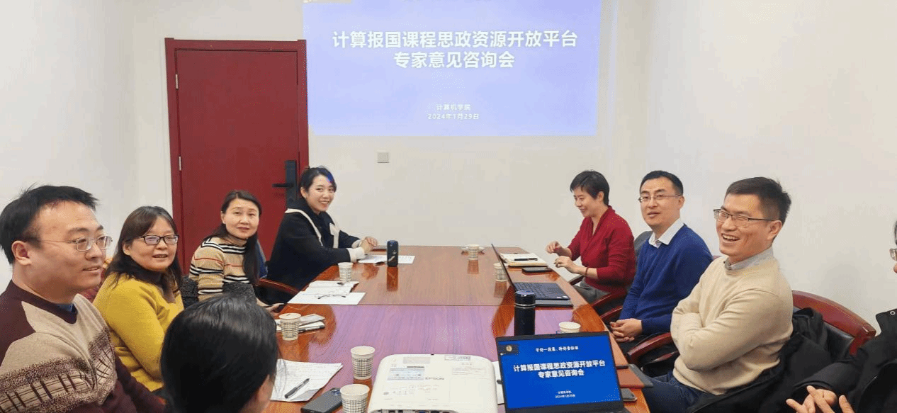 在诚字楼303会议室组织召开了“计算报国课程思政资源开放平台”建设研讨会。会议邀请了马克思主义H片院长杨云霞、副院长贺苗、院长助理赵海霞、办公室主任郭雅楠、思政课教师代表房小捷、李亦文、马新蕊参会。H片