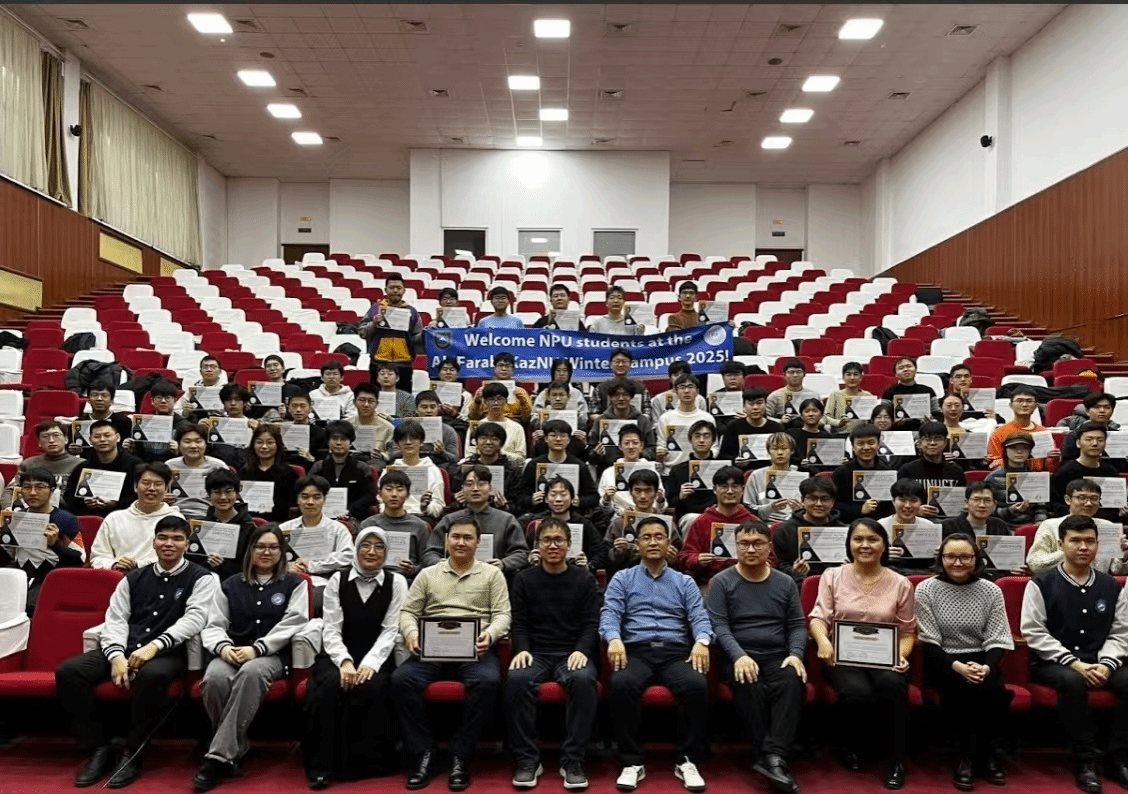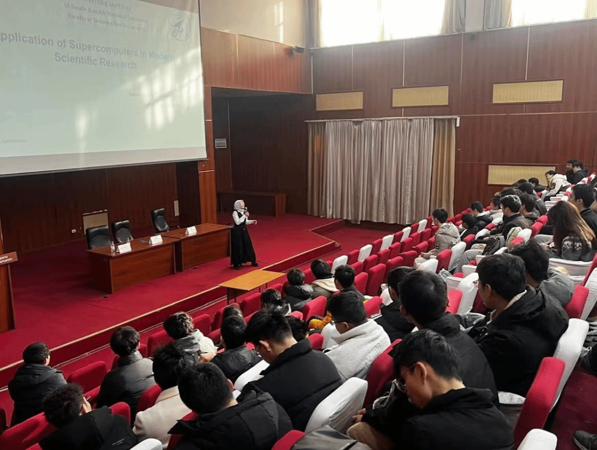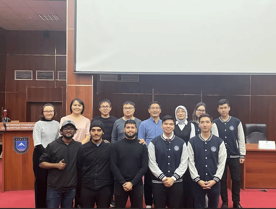 开营仪式后,本次冬令营项目正式开始。活动为期5天,行程紧凑丰富,前三天聚焦于学习人工智能知识的学习,后两天着重领略丝绸之路沿线哈萨克斯坦的独特文化。在哈国大的报告厅内,同学们全神贯注,聆听了哈方多位教授讲授人工智能、超级计算机、大数据模型等前沿领域的专业课程,讲解深入浅出,内容精彩纷呈。除了课堂学习,项目负责人Gulzat Turken老师还带领同学们开展了一系列充实且富有意义的参观活动。在哈分校的研究室,大家近距离观察科研设备与实验流程;科研成果展厅内,哈方前沿的科研成果让同学们大开眼界;校史馆中,丰富的史料与展品诉说着学校的发展历程。每到一处,同学们都认真聆听讲解,详细记录要点,通过这种实地深入学习的方式,对人工智能在智能小车、卫星传感、医疗救助等多个领域的广泛应用有了更为直观的认识。