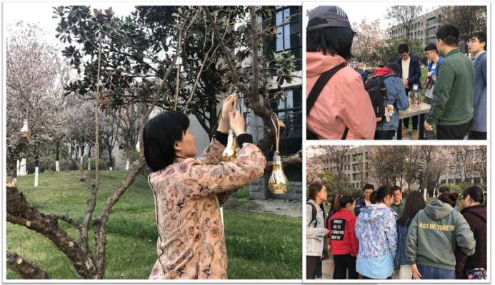 “草长莺飞二月天,拂堤杨柳醉春烟”。春分刚过,鸟语花香,绿意盎然,生机勃勃。教东楼下,玉兰树旁,在研究生辅导员周颖的指导下,彩灯活动井然有序地进行着。在夕阳的映照下,一切都显得那么和谐,那么自然,那么美丽…