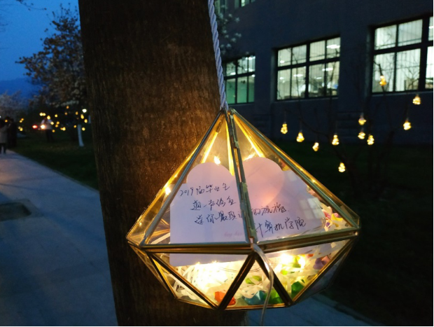 很多同学闻讯赶来,大家纷纷写下了自己的愿望和祝福,装入彩灯中,驻足等待。等待天黑的那一瞬,等待希望点亮的那一刻。