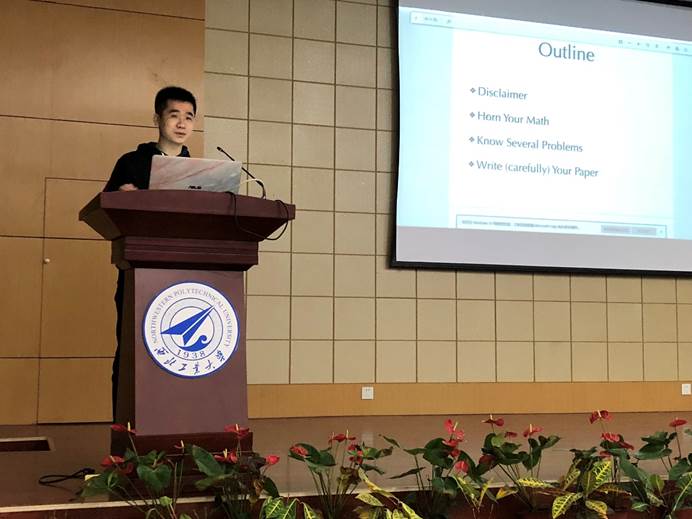 最后一位国奖得主是田来。他结合自己的专业方向,向同学们介绍了他的学习方法,第一,他特别注重理解基础数学中的原理,强调对细节的理解,这样会有助于做更有深度的工作。第二,专注于多个问题,有持续的想法产出。第三,写论文要循序渐进,缓慢地说服非专业人员。