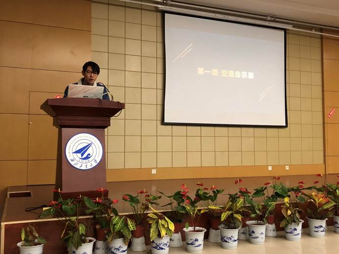 研究生同学们分享经验,交流会由研究生会主席朱祎主持,在交流会开始,他介绍了交流会的宗旨与流程。