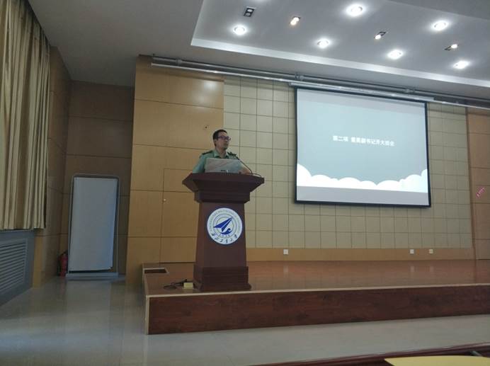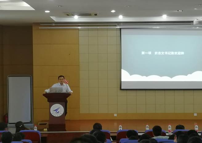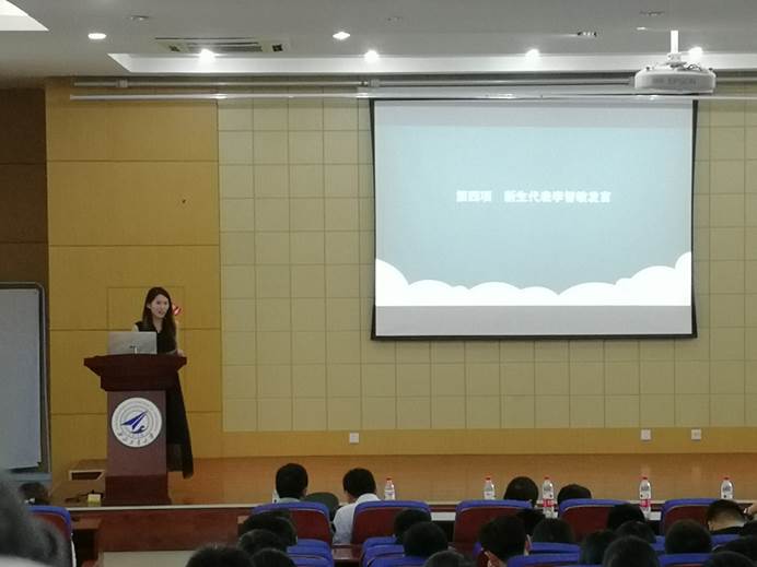 研究生会主席朱祎发言,他就研究生会和实践考核制度分别进行了介绍,以自己在科研和生活中的经历给新生们提出了中肯的建议。