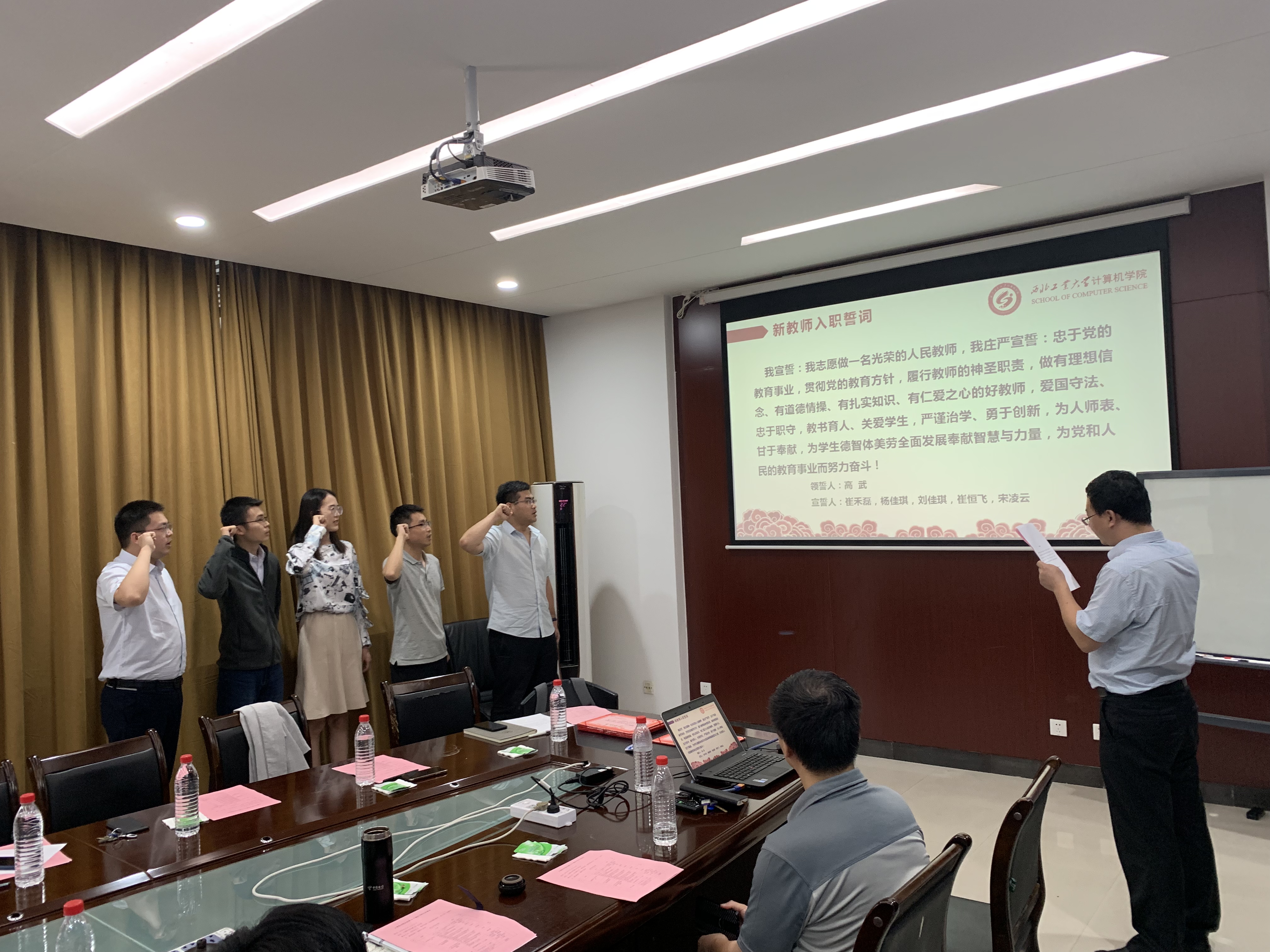 在320会议室举行2019年新教师入职宣誓仪式。H片副院长(主持工作)张盛兵,副院长尚学群、邓磊,2019年新进教师崔禾磊、崔恒飞、刘佳琪、杨佳琪、宋凌云,以及H片师生代表参加了此次入职仪式。仪式由H片党委副书记高武主持。