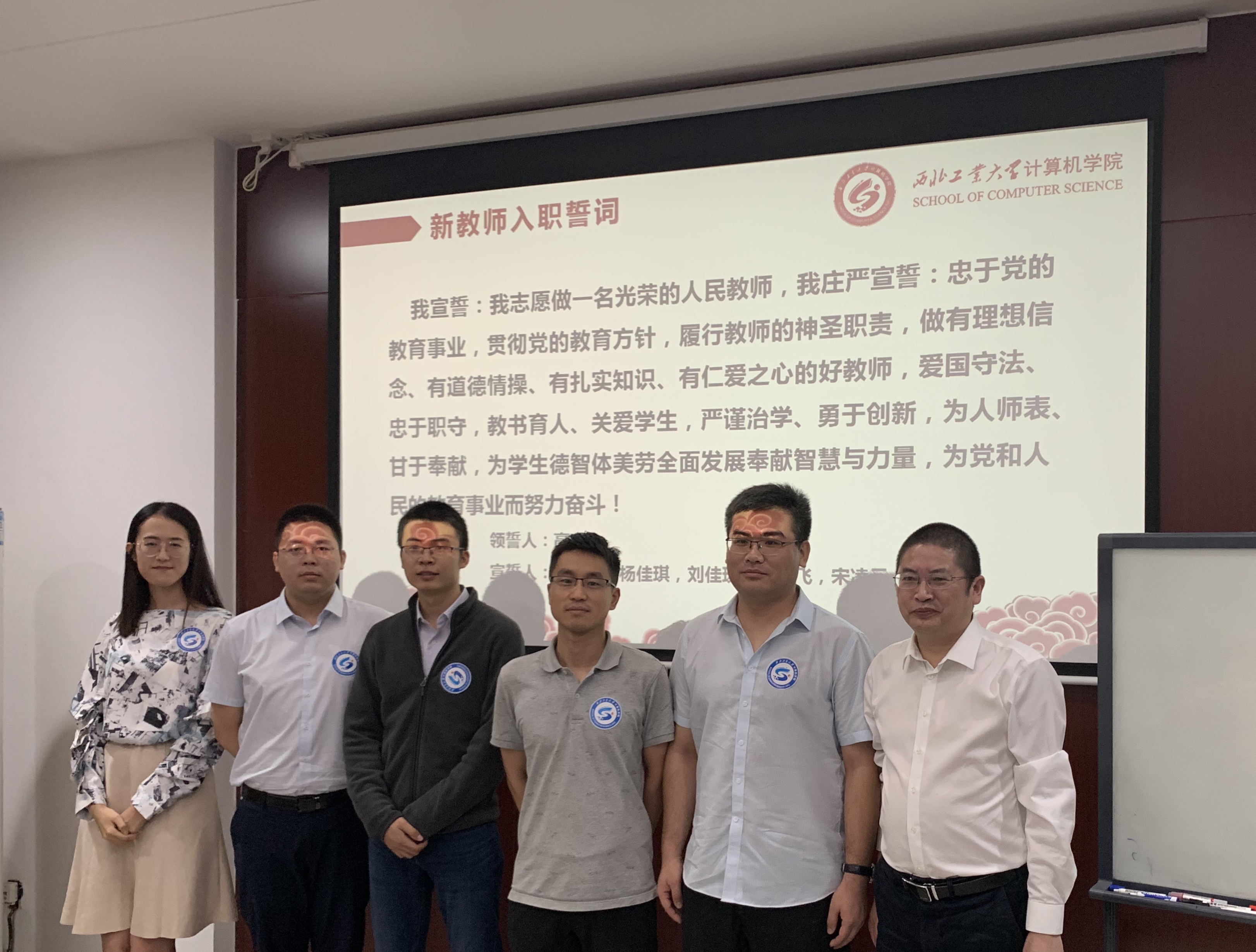 宣誓结束后,张盛兵代表H片为新教师们颁发了院徽,欢迎他们正式加入H片