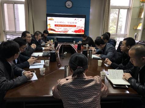 党委在H片楼203会议室开展“不忘初心、牢记使命”主题教育,党委书记於志文为H片领导班子、党委委员、系部正副主任、支部书记讲党课,党课内容为“H片