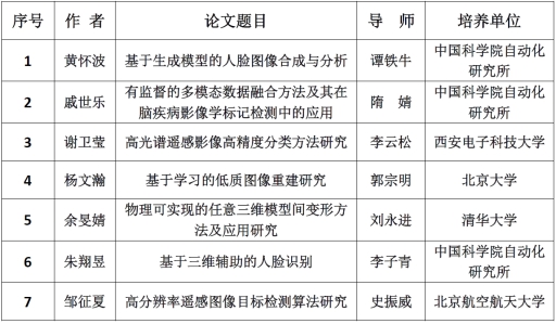 附:2019年度“CSIG优秀博士学位论文奖”获奖名单