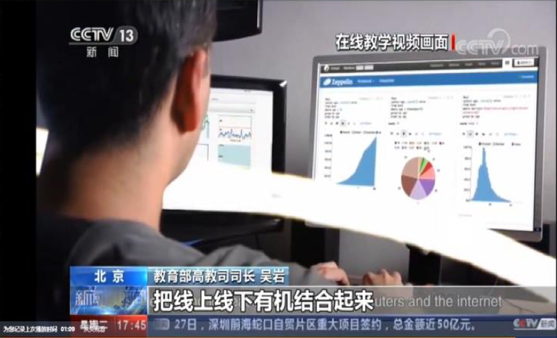 在当日的CCTV13新闻直播间《教育部首批高校在线教学国际平台面向全球推出》的专题报到中再次展示了汪芳老师的全英文在线课程的教学视频。