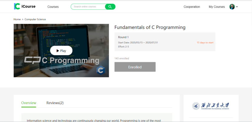 与此同时,汪芳的全英文课程《Fundamentals of C programming》 (C程序设计)也在清华大学学堂在线国际平台正式上线。