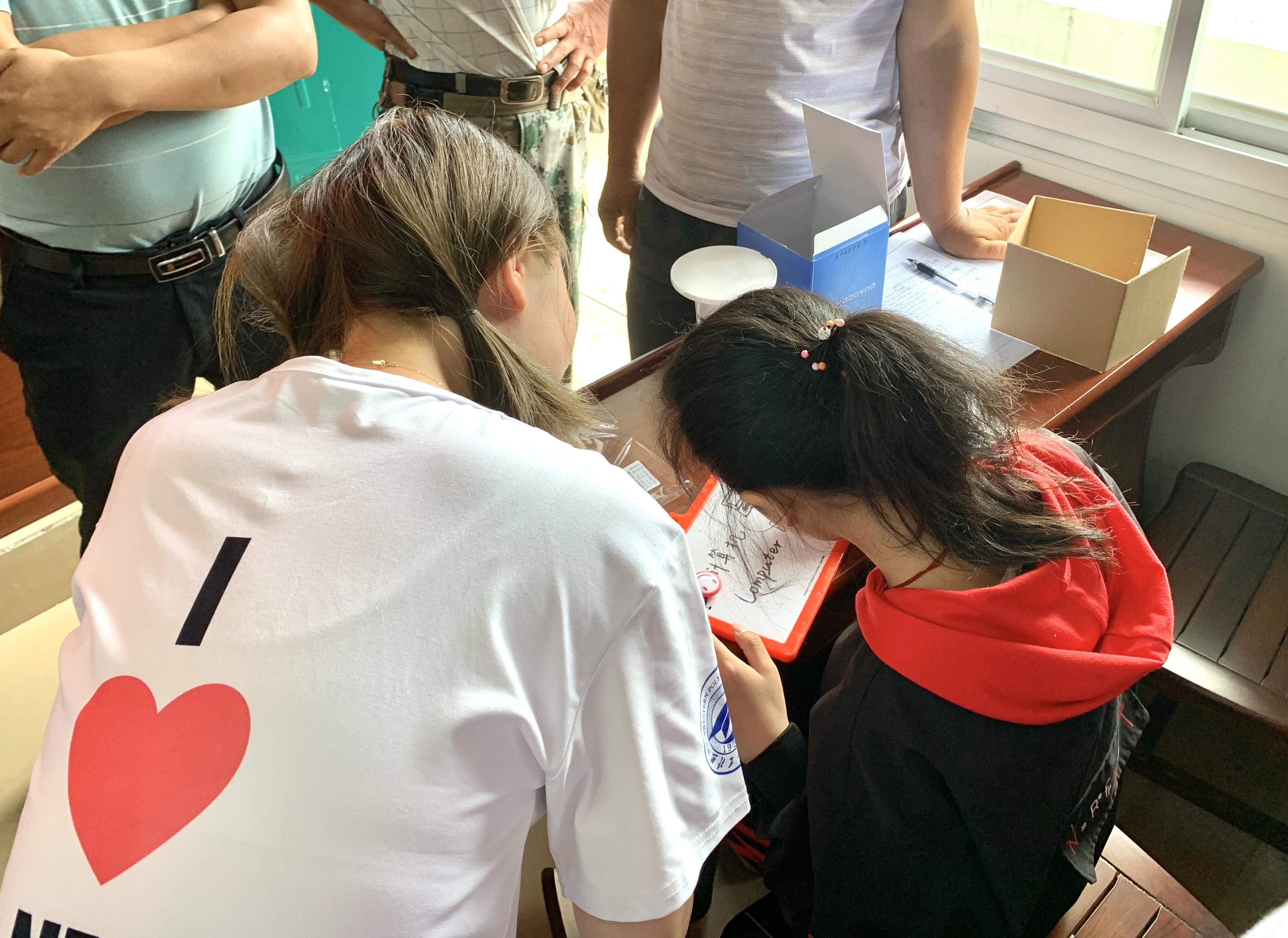 座谈会后,在王柱的带领下,实践队员们给小朋友们赠送了画板还有西工大特有的小型无人机模型,并教小朋友们在画板上画下了他们对未来的期许。