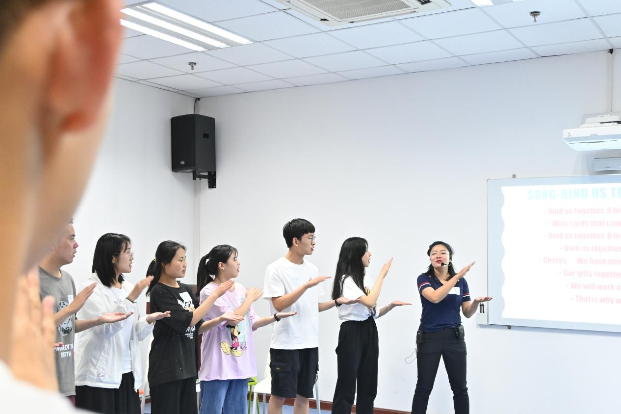6月20日下午,王莉在实操层面通过具体活动项目锻炼培养学员们的领导能力和组织能力。Ubuntu card、蓝鼻子大赛、友谊五色珠、group dynamic(小组动力)、爱的五种语言、模拟营会组织等活动,让学员们对领导力和组织力有了更加切实的体验和感悟,让大家向真正意义上的leader目标不断靠近。