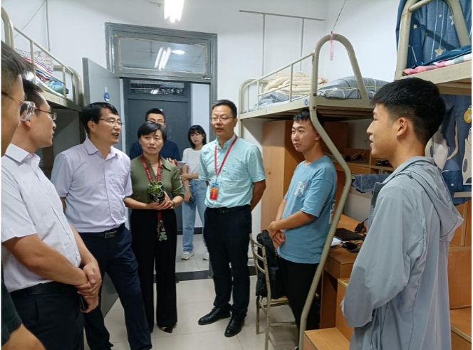 在交谈过程中,H片领导还不时问起同学们的兴趣爱好和理想目标,鼓励同学们坚持兴趣爱好,尤其坚持体育运动,锻炼健康体魄;同时叮嘱大家要尽早制定大学规划和职业规划,做到有目标、有举措、有行动。在看到部分内务整洁的床铺时,领导特意对同学提出了表扬,提醒大家宿舍是同学们待得时间最多的地方,希望大家在未来的四年都能够保持宿舍干净整洁。