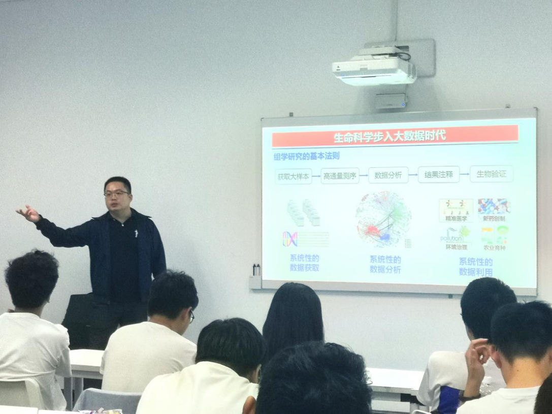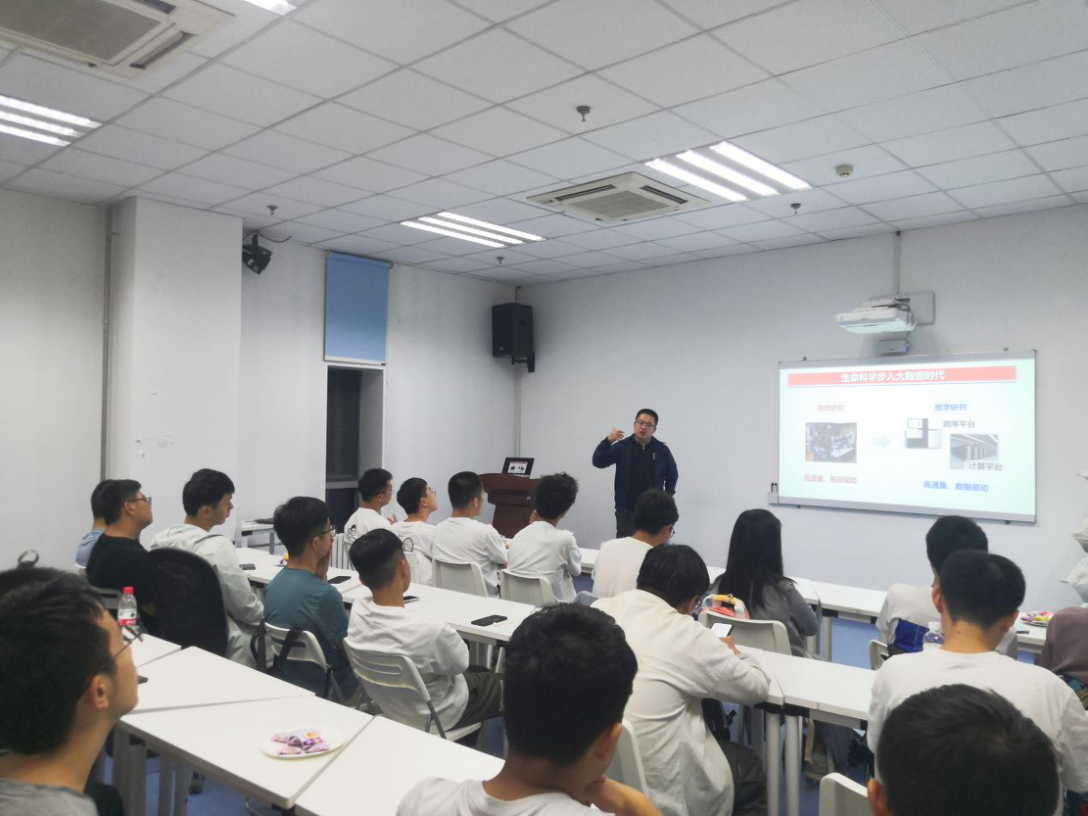 汪涛老师为同学们带来主题为“Bioinformatics: the key driver of life science in era of big data”的专题报告,介绍了生物信息学作为计算机科学和生命科学的交叉领域,在当今世界科技发展趋势下面临的机遇和挑战,BT和IT的融合,为基因组学这个重要的生物学分支奠定了基础,生命科学步入了大数据时代,也将让基因测序越来越便捷,时间和成本也越来越低,大量物种的基因测序指日可待,BT-IT产业蓬勃兴起。汪老师通俗易懂的独到讲解让同学们认识到生物信息学的发展对于改善人类健康和全球环境、消除疾病和促进经济发展具有重要意义。